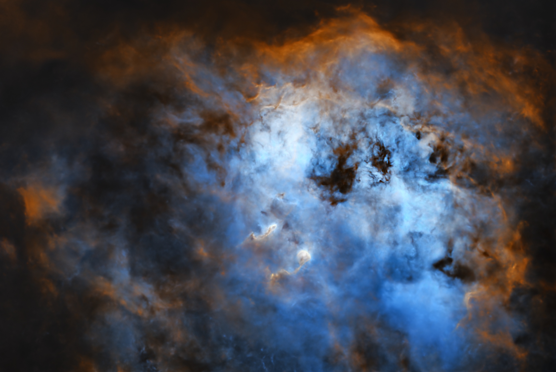 The Tadpoles Nebula is a young star forming region. It features two pillars of dust and gas, similar to those found in the Star Queen Nebula. These pillars resemble tadpoles—earning the nebula its curious name.