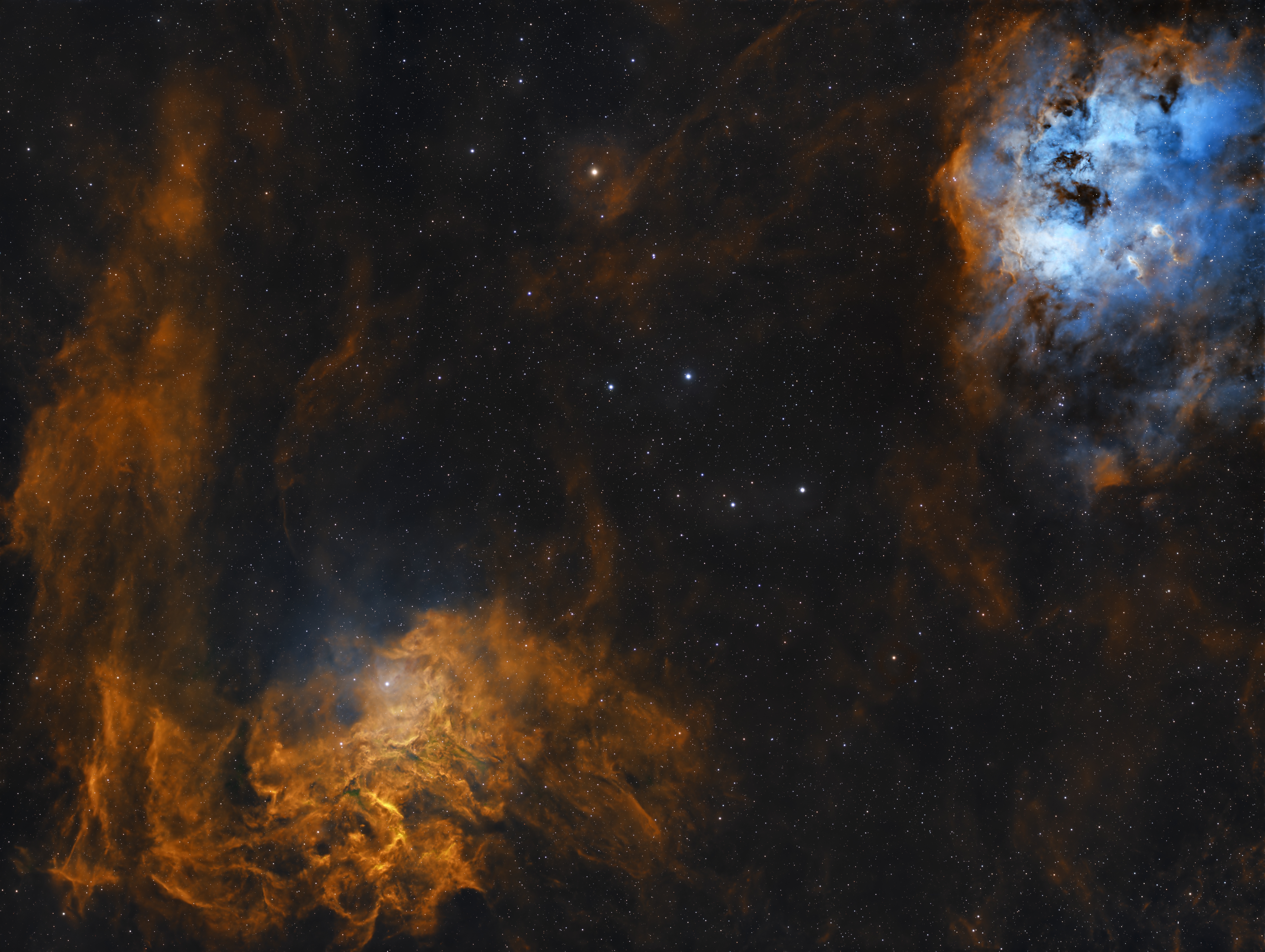 The Flaming Star Nebula, IC 405 (left), and Tadpoles Nebula, IC 410 (right)