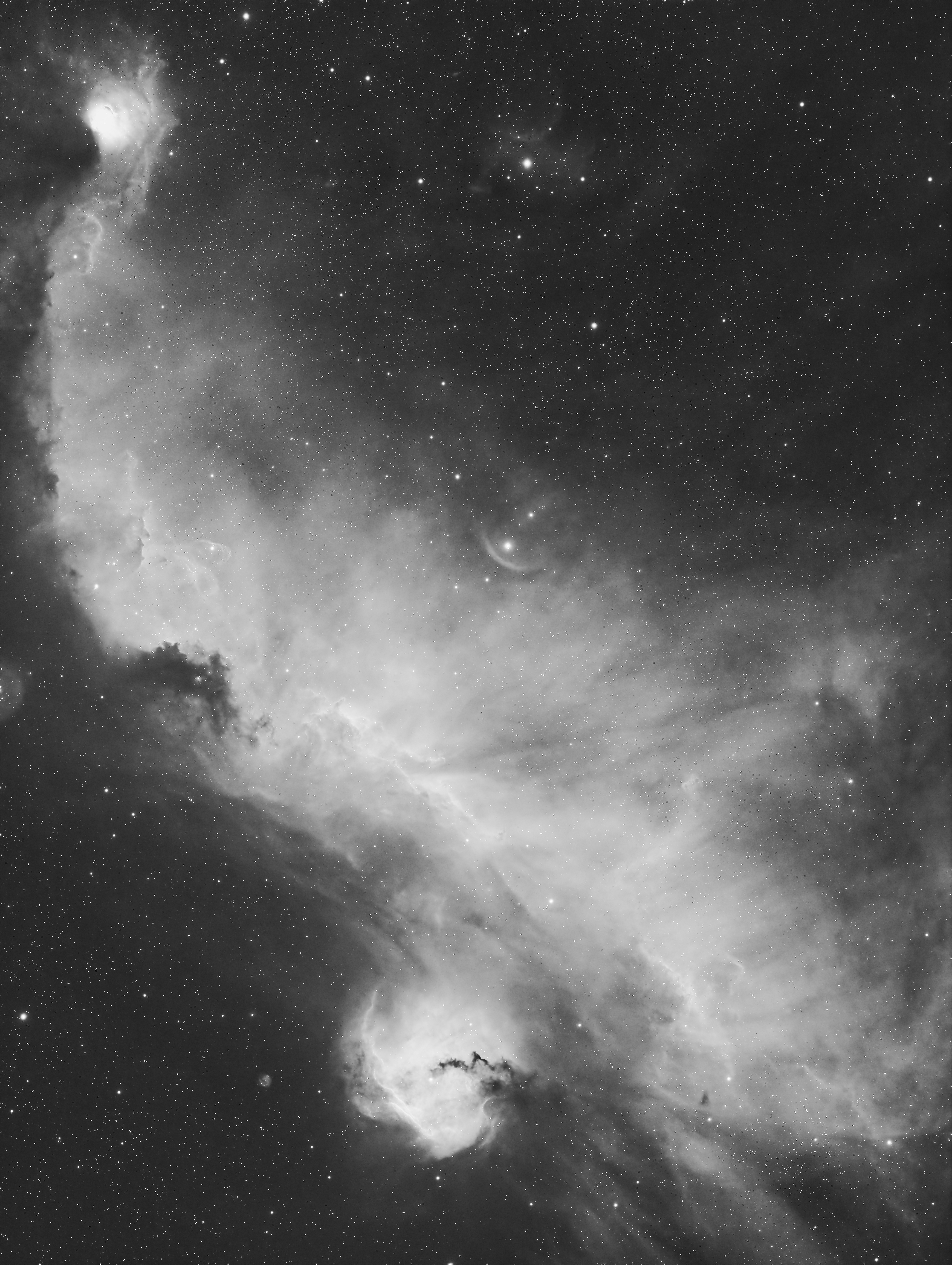 This is a Hydrogen Alpha (Ha) portrait of the Seagull Nebula. The ‘wings’ of this nebula span 100 light years across.